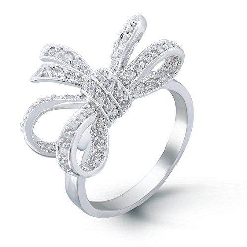 JanKuo Jewerly Vintage Style Ribbon Bow Tie Cubic Zirconia Ring in Gift Box, Color may vary for Free Gift Boxes