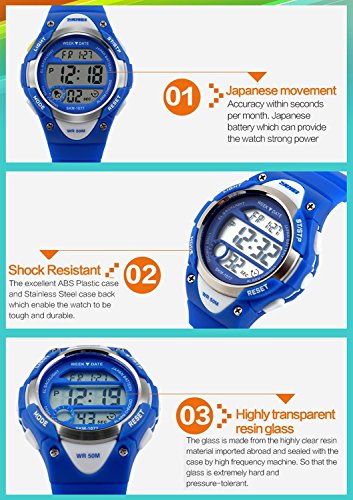PRECISE TIME KEEPING: Original Movement, provide precise and accurate time keeping for kids. Imported wristwatch battery which can provide the digital watch strong power when children playing sports.