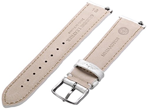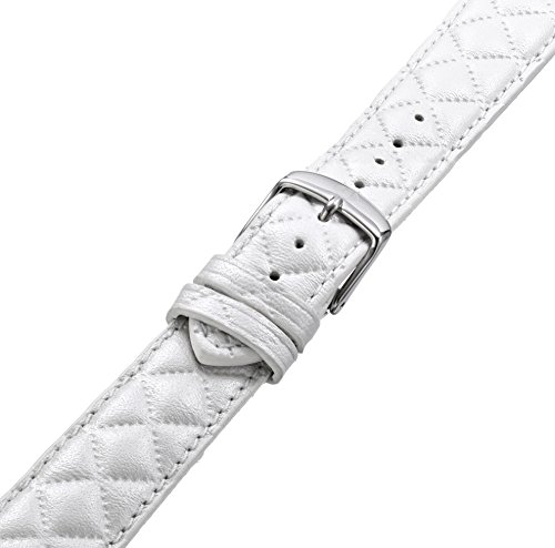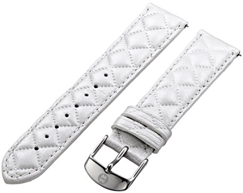 Change the look of your watch with a fashionable quilted leather strap. This white strap is easily interchangeable with any 18mm Michele watch, and the stainless steel buckle has the signature logo engraving. The standard buckle comes in Stainless Steel..