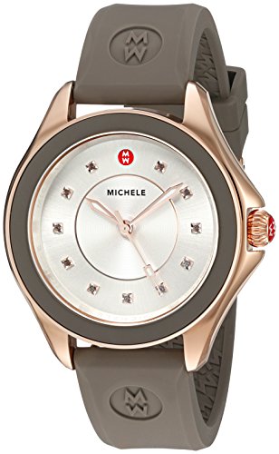 MICHELE Women’s Cape Quartz Stainless Steel and Silicone Dress Watch, Color:Brown (Model: MWW27A000014)