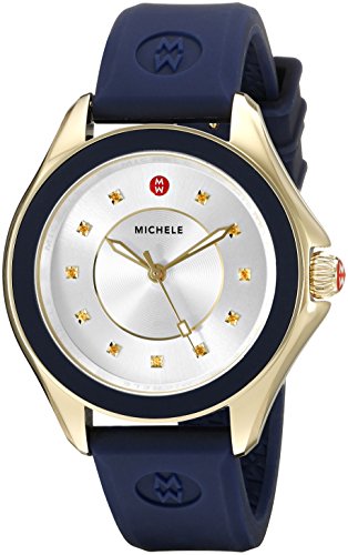 MICHELE Women’s MWW27A000013 Cape Gold-Tone Stainless Steel Watch with Navy Blue Band