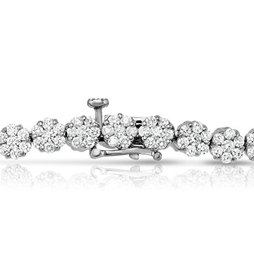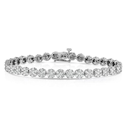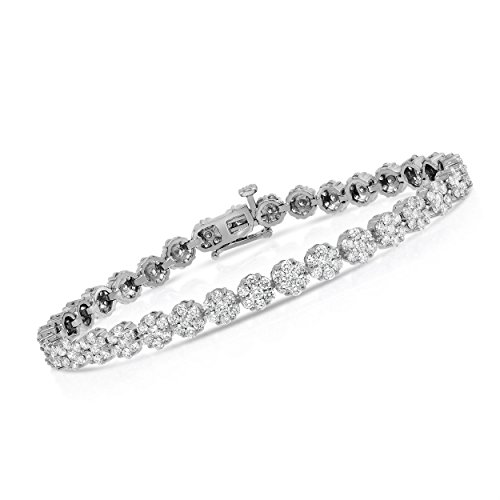 Noray Designs 14K White Gold Diamond (5 Ct, G-H, SI2-I1 Clarity) Flower Cluster Tennis Bracelet