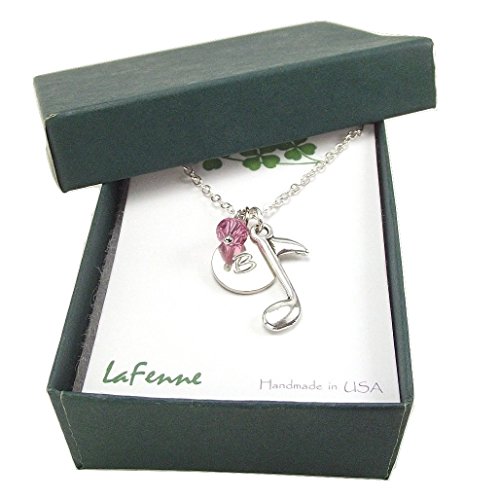 LaFenne Personalized Music Note Necklace Customize Initial Disk and Swarovski Crystal Silver Plated Birthday Gift