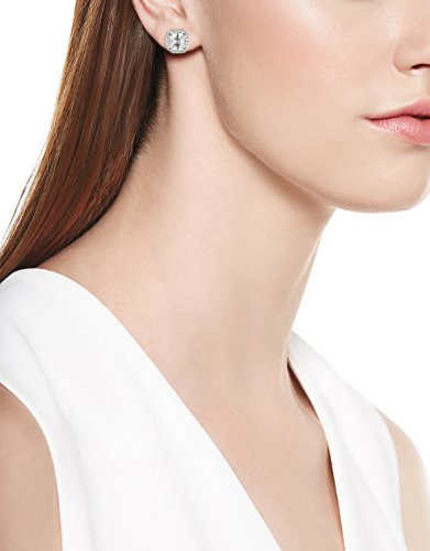 An Amazon brand – Plated sterling silver earring featuring asscher-cut Swarovski Zirconia in four-prong setting surrounded by halo of smaller round stones
