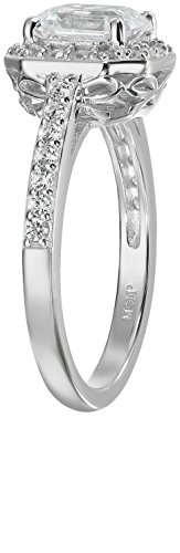 An Amazon brand – Asscher cut centerpiece set with Swarovski Zirconia (1.5 cttw) surrounded by a halo of smaller stones