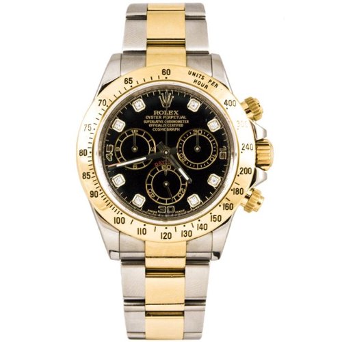 Rolex 40mm Stainless Steel & 18K Gold Daytona Model 116523 Black Diamond Dial Inner Bezel Engraving Model