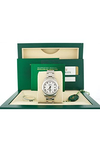 Stainless steel case with a stainless steel oyster bracelet. Fixed, domed bezel bezel. White dial with silver tone hands and Roman numeral hour markers. Date display at the 3 o’clock position. 31 jewels automatic movement. Scratch resistant sapphire crystal. Case diameter: 31 mm. Deployment clasp. Water resistant at 100 meters/ 330 feet. Functions: hours/ minutes/ seconds/ date. Additional Info: date displays at 3 o’clock position. Rolex Datejust White Roman Dial Oyster Bracelet Unisex Watch.