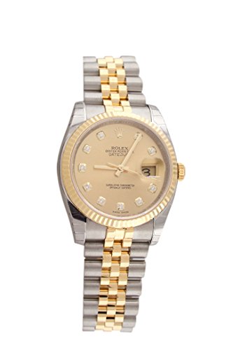 Rolex Datejust 36mm Champagne Diamond Dial Fluted Watch 116233