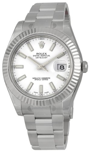Rolex Datejust II White Dial 18k White Gold Stainless Steel Oyster Bracelet Mens Watch 116334WSO