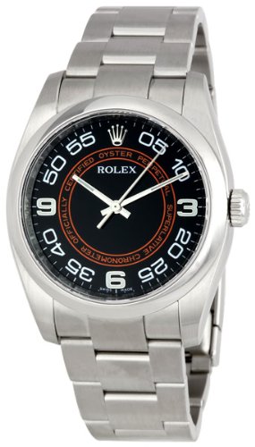 Rolex No Date Black Arabic Dial Orange Concentric Circle Mens Watch 116000BKCOAO