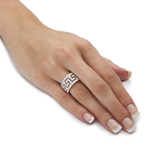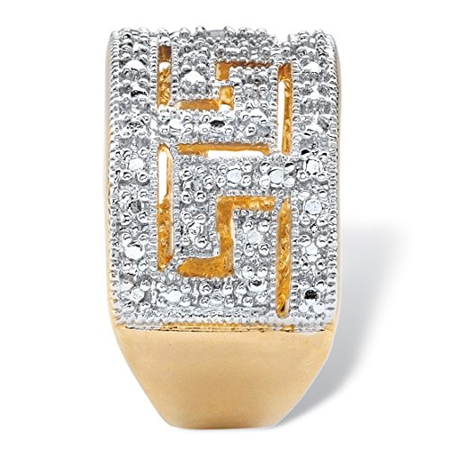 The Greek key pattern symbolizes strength and unity through Greek art and architecture. This sparkling ring is an exceptional example of art meeting jewelry to create beauty. Diamond accents and a cutout design take it to the next level. Lavishly plated in 18k yellow gold for a warm, two-tone contrast. Sizes 6-10. – 573807