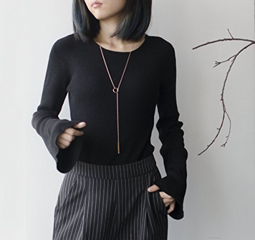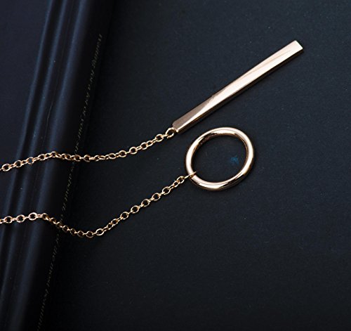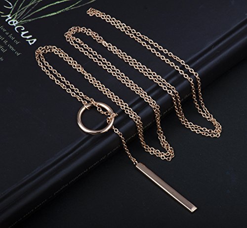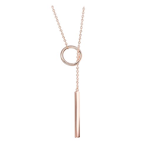 Dainty circle cylindrical and bar Y necklace, with adjustable silicone ball behand to keep it from slipping,minimal style suit for any occasion, simple and convenient to wear