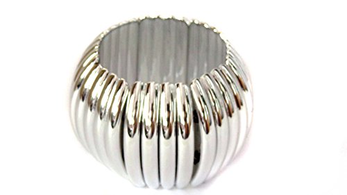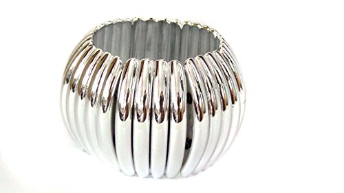 FASHION JEWELRY Silver Stretch Clam Bangle Bracelet 2 Inch Thick Bangle