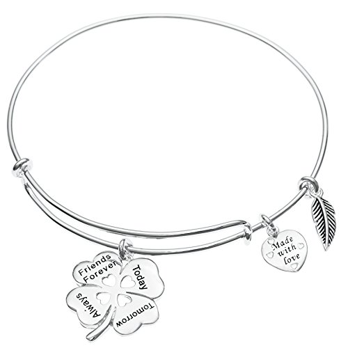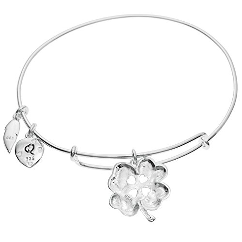 Qina C Sterling Silver 4 Leaf Clover Heart Friends Forever Today Tomorrow Always Adjustable Bangle Bracelet