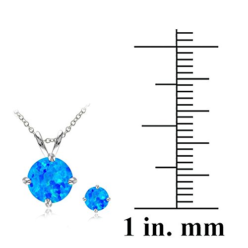 GemStar USA Sterling Silver Synthetic White Opal Round Solitaire Necklace and Stud Earrings Set