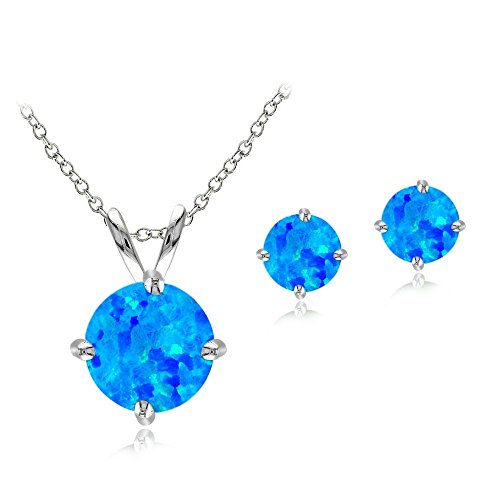 FEATURE – This charming jewelry set for women and jewelry set for girls showcases a round solitaire necklace pendant with matching solitaire earrings. The pendant features a sparkling 7mm round synthetic white opal gemstone and the opal studs feature 5mm synthetic white opal stones. This necklace and earring set should be an addition to your fine opal jewelry and gemstone jewelry collection.