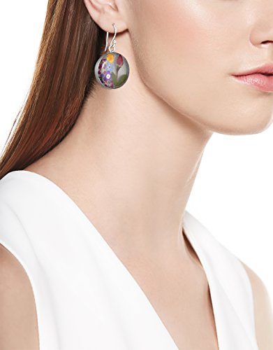 Unique circular translucent drop earrings featuring real dried flowers in colorful hues preserved in resin and surrounded by sterling silver settings