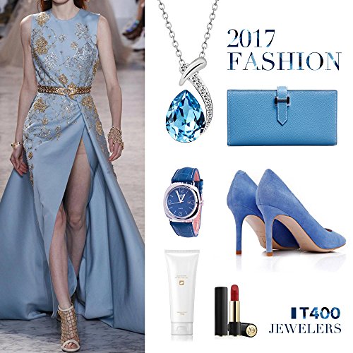 T400 Blue Waterdrop Crystal Pendant Necklace and Stud Earrings Set Birthday Gift for Women