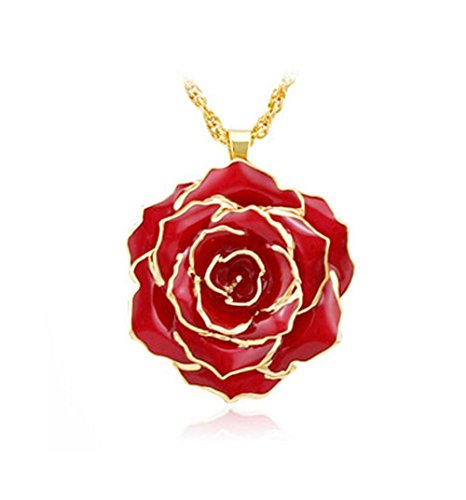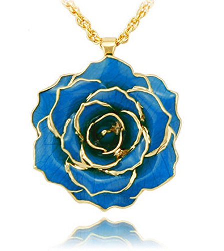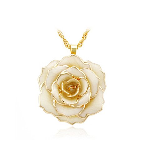 ZJchao 30mm Golden Necklace Chain with 24k Gold Dipped Real Rose Pendant Gift for Women